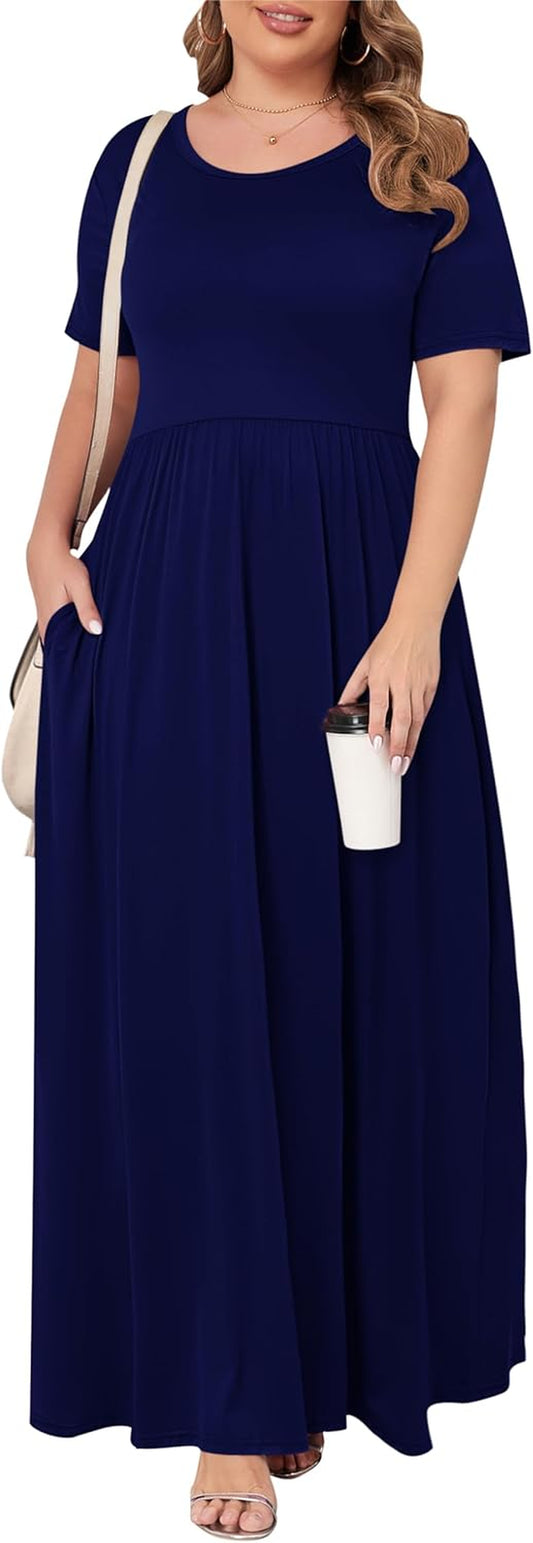 Women’S plus Size Maxi Dresses for Curvy Women Summer Casual Short Sleeve 2026 Long Dress 14W-26W